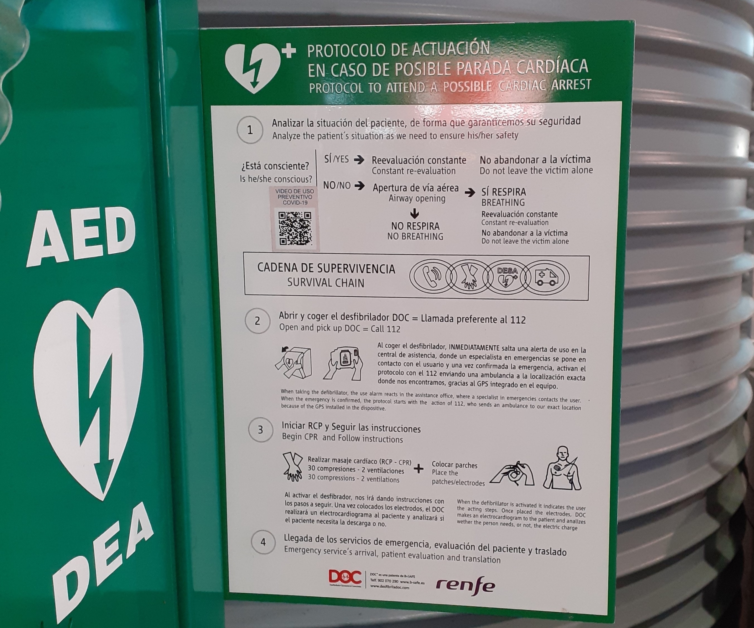 - Instrucciones para el uso del desfibrilador ubicado en estaciones Renfe