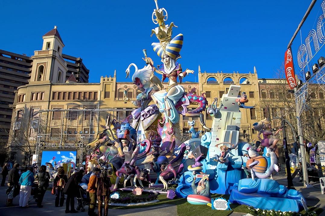 Una falla (para aquellos pocos que nunca hayan visto ninguna, ni siquiera en las “stories” de Instagram) es una composición artística hecha de poliestireno expandido (aka, “corcho blanco”) que esculpen artesanos para sacar de él a políticos, cantantes, “influencers”, futbolistas y demás gente de bien o de mal. Figuras caricaturescas, divertidas y exageradas que, juntas, dan sentido al monumento, y estos, a las Fallas. Y las Fallas, entendidas como fiesta, tienen sentido por su efimeridad, como el arco iris o la felicidad. Todo acaba y todo comienza la noche del 19 de marzo, cuando el fuego purificador -perdón por el tópico- reduce a cenizas el trabajo de un año y aviva la ilusión del siguiente.