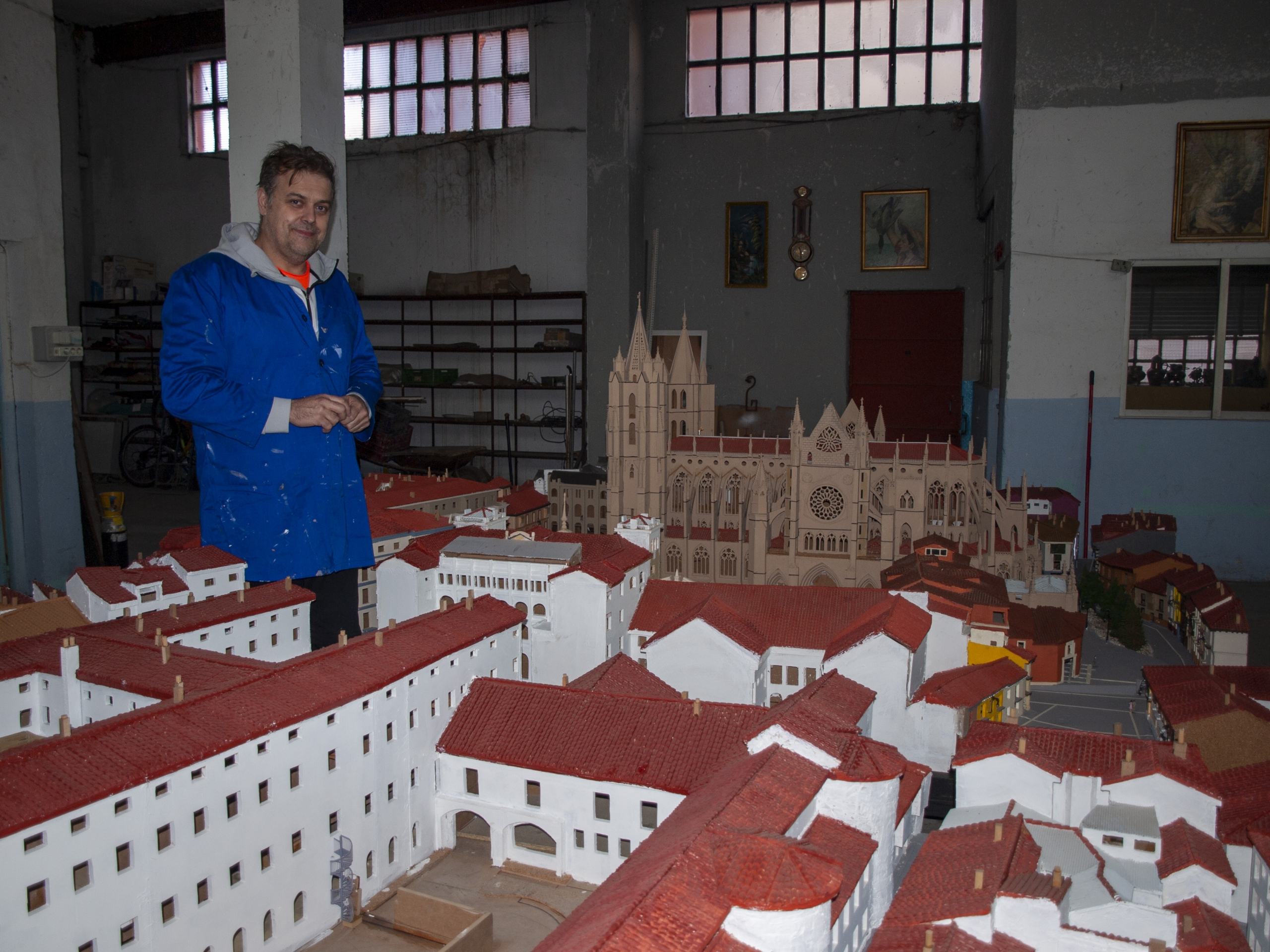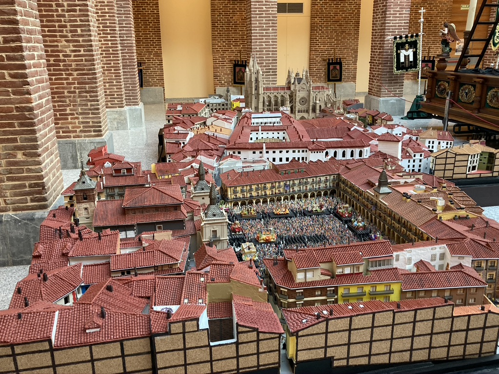 Sí, va a quedar expuesta en el Museo de la Semana Santa de León. Es una maqueta que mide 7,85 x 3,60 metros. Representa la Plaza Mayor de León durante la Procesión de los Pasos, y también la catedral. Tuve que investigar mucho porque tiene componentes históricos de la ciudad, como el edificio de Puerta Obispo o la cúpula original de la catedral, que hoy en día están desaparecidos, y me gusta mucho. Hay 15.000 personas, hechas una a una, en el interior de la plaza. Me pone la piel de gallina ver a la gente que se emociona delante de la maqueta, porque para mí poder transmitir eso con una miniatura es muy reconfortante, ves que ha merecido la pena hacerlo y es una satisfacción personal tremenda.