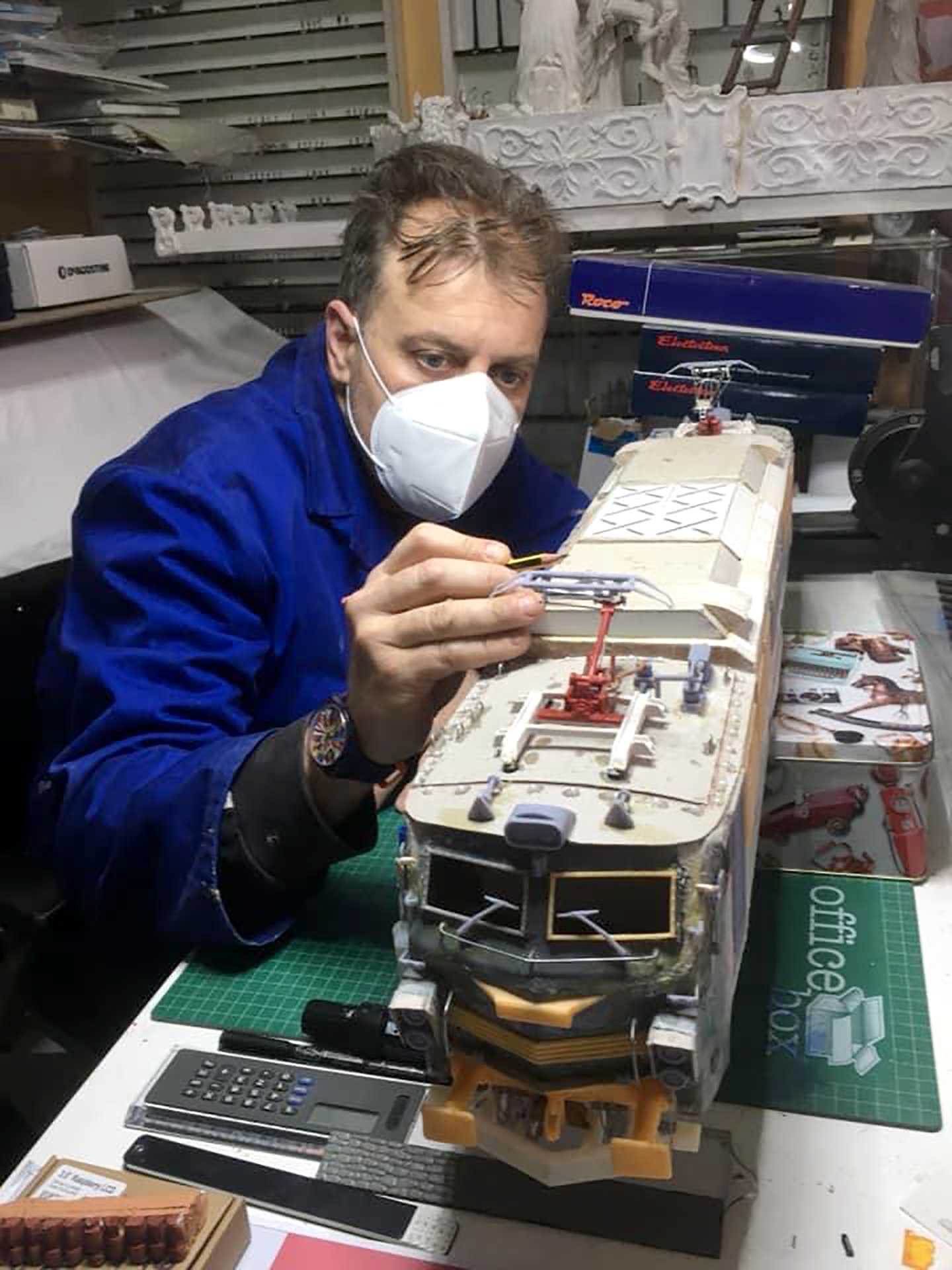 Sí, claro, tengo maquetas de tren hechas por mí, tengo más de trescientas locomotoras, más de dos mil vagones que he coleccionado desde hace un montón de años, y ahora estoy haciendo una S-251 a escala 1:22. Es una recreación totalmente fiel a la realidad porque trabajo con esa máquina en la actualidad y la conozco mucho. Trabajar con trenes me facilita documentar todo de primera mano porque imagínate si no conoceré yo la 251 si estoy trabajando con ella todo el día en Mercancías.