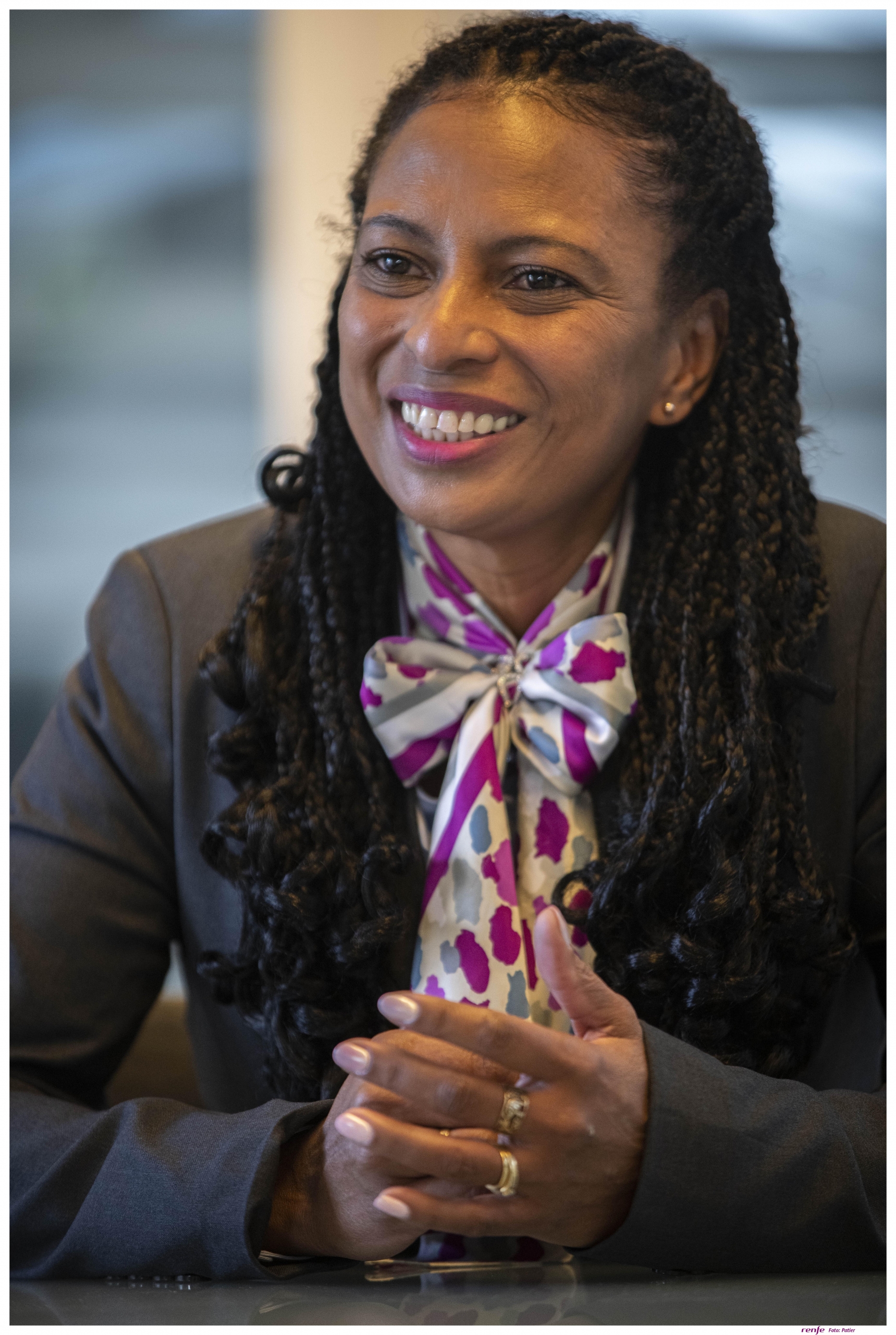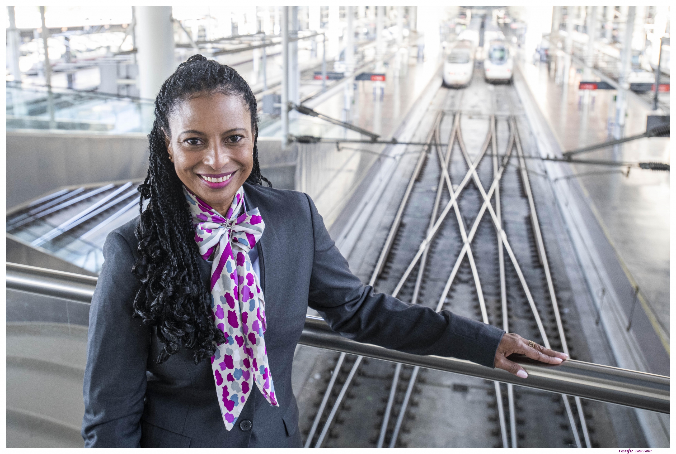 Rosalina Reyes Ges es maquinista en la Dirección de Servicios Comerciales y nuestra siguiente protagonista de Mujeres en Renfe, sección que pone el foco en trayectorias profesionales con tren de fondo articulado en femenino y singular. La cita de la entrevista nos lleva a la estación Puerta de Atocha en Madrid. La pandemia enmascara rostros difíciles de adivinar de ojos para abajo, pero Rosalina destaca entre el gentío que viene y va destino a lugares que ansían recuperar normalidad. Es de origen cubano: piel, cabello y rasgos evidencian una apariencia muy diferente al imaginario estereotipado del maquinista tradicional. Viste el uniforme que la identifica como trabajadora de Renfe de pies a cabeza y al principio se muestra inquieta ante la batería de preguntas que arranco con los inevitables cómo y cuándo decidió que quería ser maquinista mientras ponemos rumbo a los andenes y trenes que forman parte de su paisaje y puesto de trabajo habitual. Y entre preguntas y respuestas enlazamos una conversación que resultó ser así: